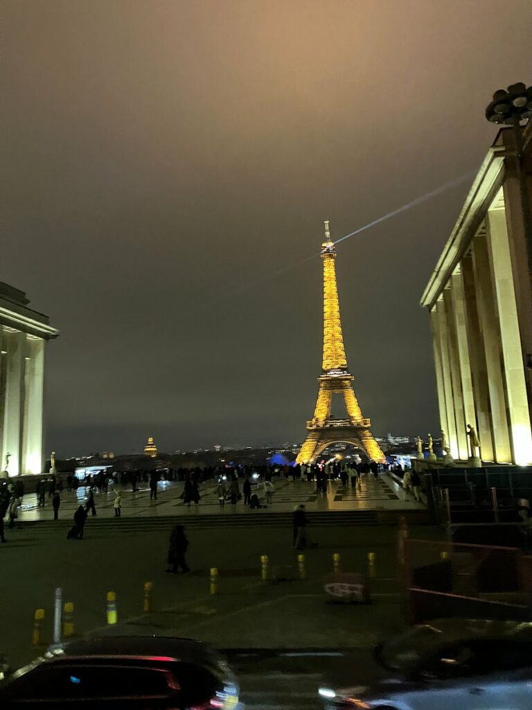 Voir la ville qui brille la nuit, y compris la Tour Eiffel